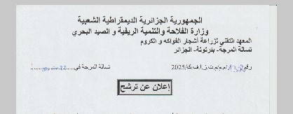يعلن المعهد التقني لزراعة أشجار الفواكه و الكروم عن فتح باب الترشح للإلتحاق