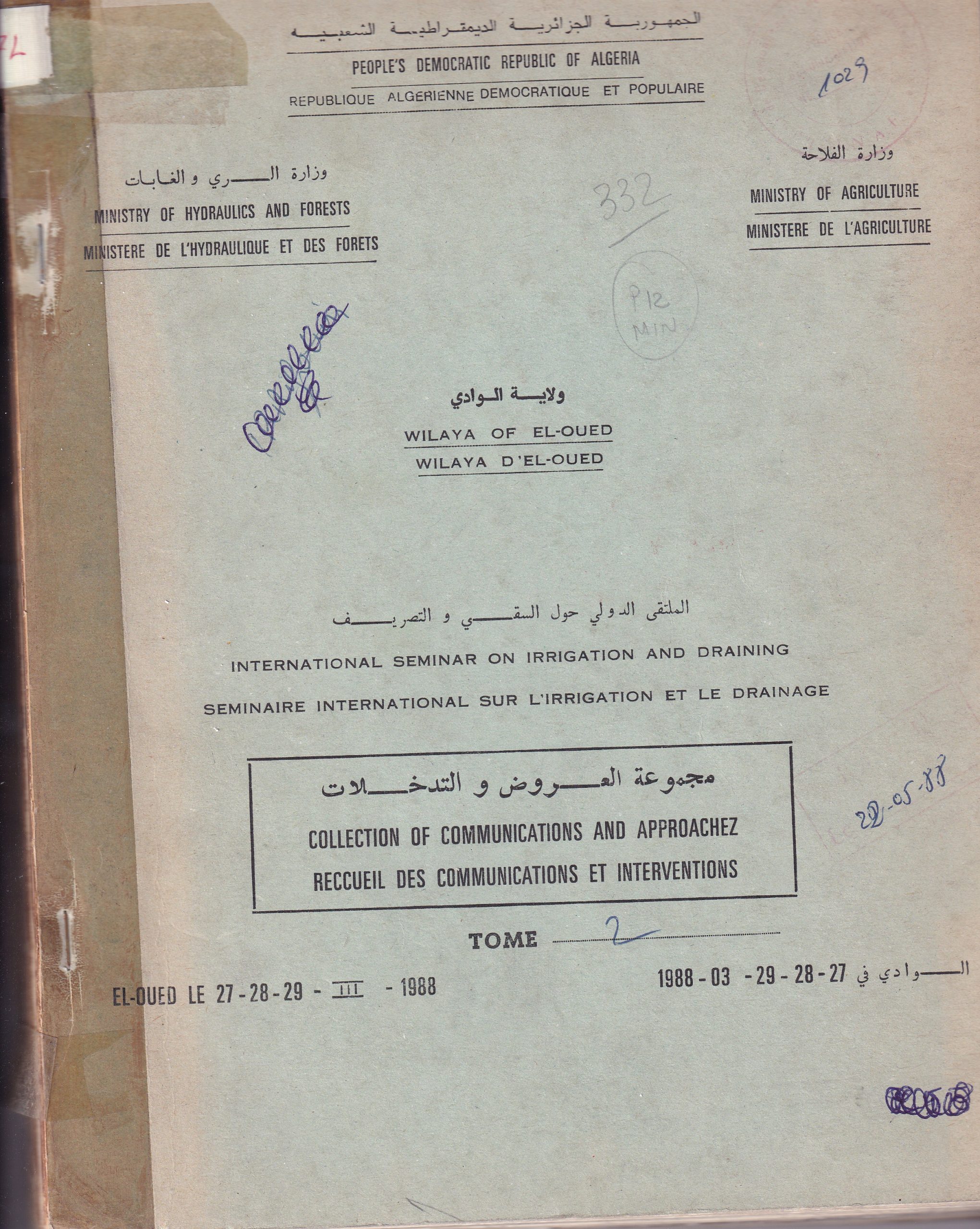 Auteur:MINISTERE DE LHYDRAULIQUE ET DES FORETS ; MINISTERE DE LAGRICULTURE